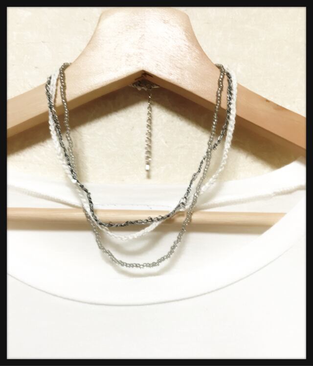スパンコール付きグレーチェーン×ホワイトの手編みチェーン