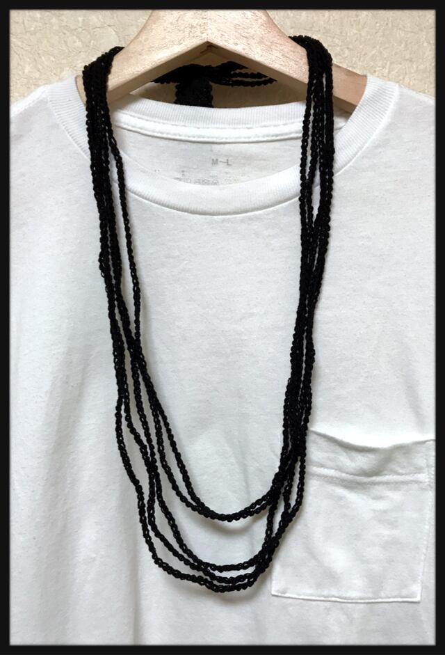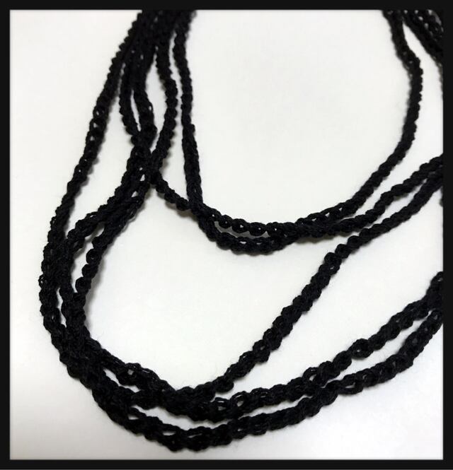 【送料無料】5連 手編み チェーン ロング ネックレス ブラック 黒 ハンドメイド