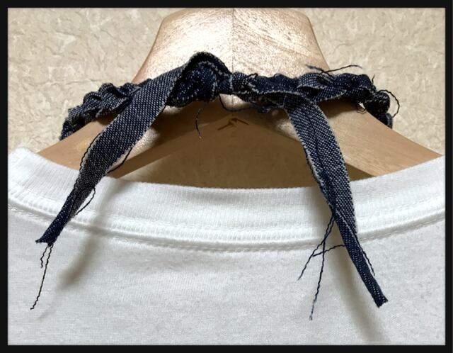 【送料無料】デニム 切りっぱなし 編み込み ロング ネックレス ブルー 青 ハンドメイド