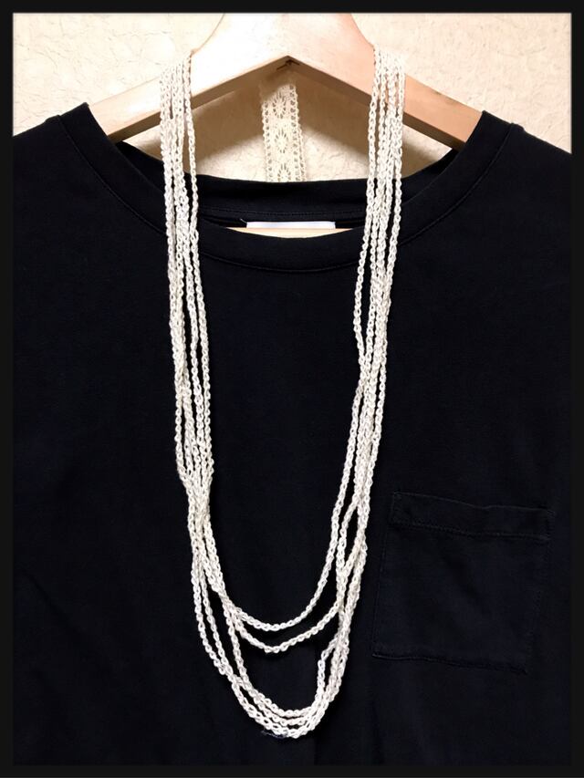 【送料無料】5連 手編み チェーン ロング ネックレス ターコイズ オフホワイト 白 ハンドメイド アクセサリー