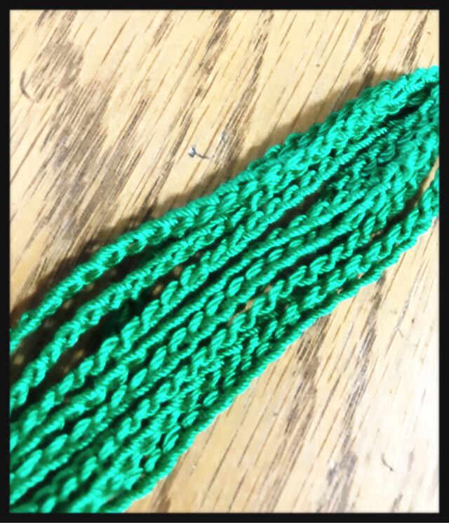 【送料無料】手編みチェーンタッセル風フックピアス グリーン ハンドメイド アクセサリー