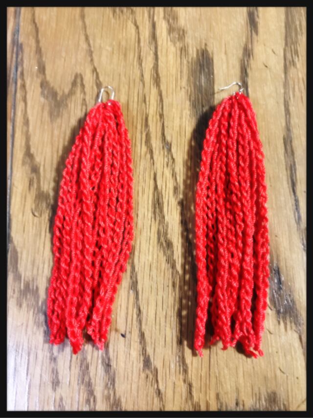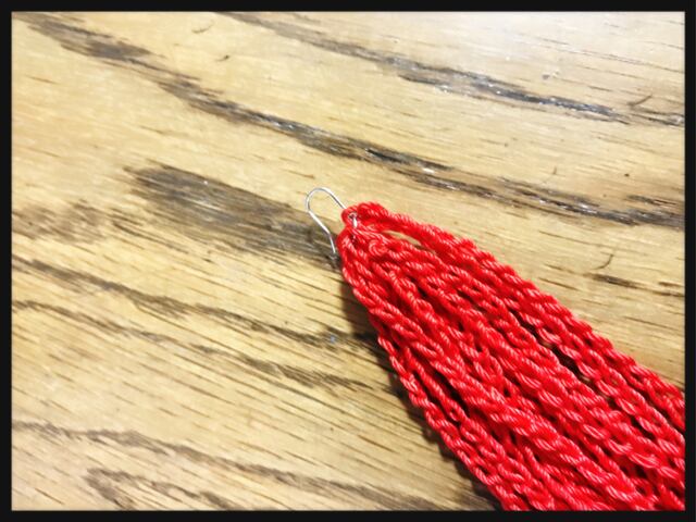 【送料無料】手編みチェーンタッセル風フックピアス レッド